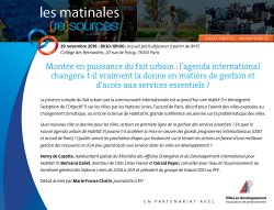 Le think tank (Re)sources organise sa prochaine Matinale intitulée : « Montée en puissance du fait urbain : l’agenda international changera-t-il vraiment la donne en matière de gestion et d’accès aux services essentiels ? » - mardi 29 novembre - 8h30-10h00 - Collège des Bernardins - 20, rue de (…)