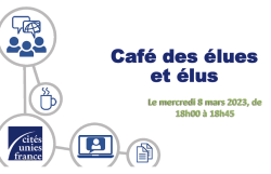 NB : les cafés des élus sont strictement réservés aux élues et élues des collectivités adhérentes de Cités Unies France. Madame, Monsieur, J’ai le plaisir de vous inviter au prochain « Café des élues et élus de Cités Unies France » qui se tiendra mercredi 8 mars prochain, de 18h00 à 18h45 (…)